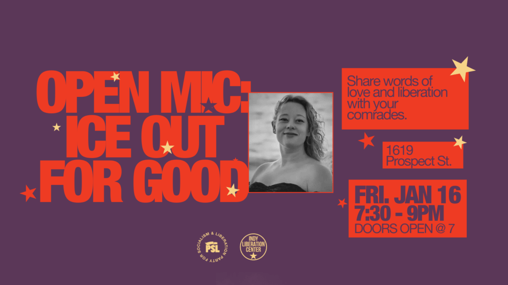 ICE out for Good Open Mic PSL Indianapolis Come to envision a future without ICE and reinforce the role of art in liberation movements!