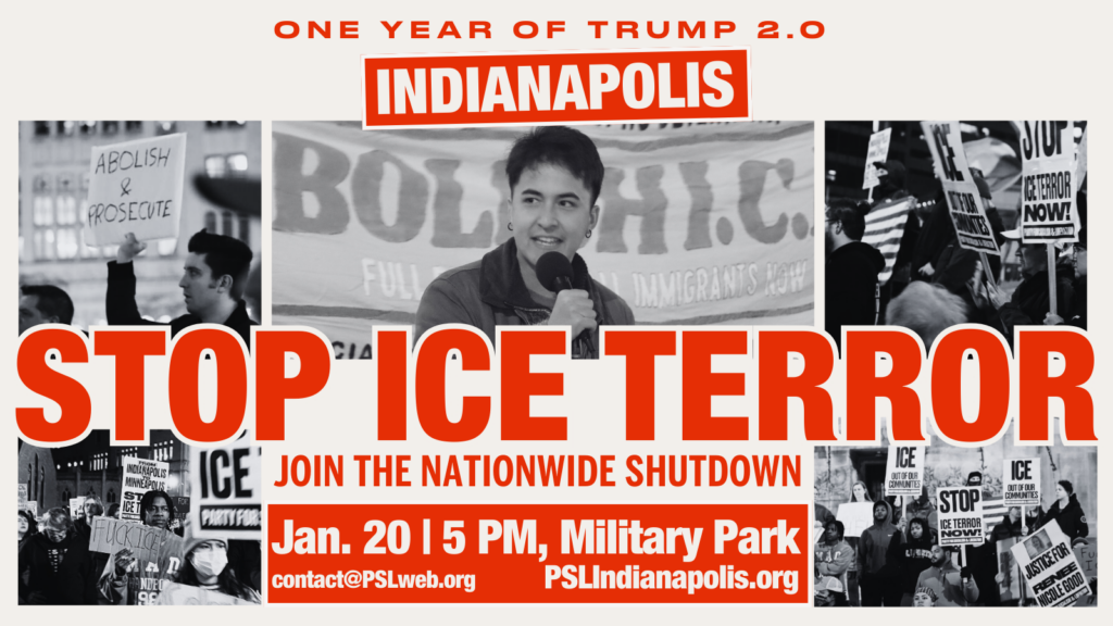 January 20th National Day of Action PSL Indianapolis Meet us at Military Park to oppose one year of ultra-right-wing policies enacted by the Trump admin.