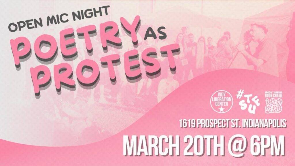 1 “Poetry as Protest:” Open mic night Indianapolis Liberation Center Meet the #STFU Artist Collective for a powerful night of art and solidarity at our open mic!