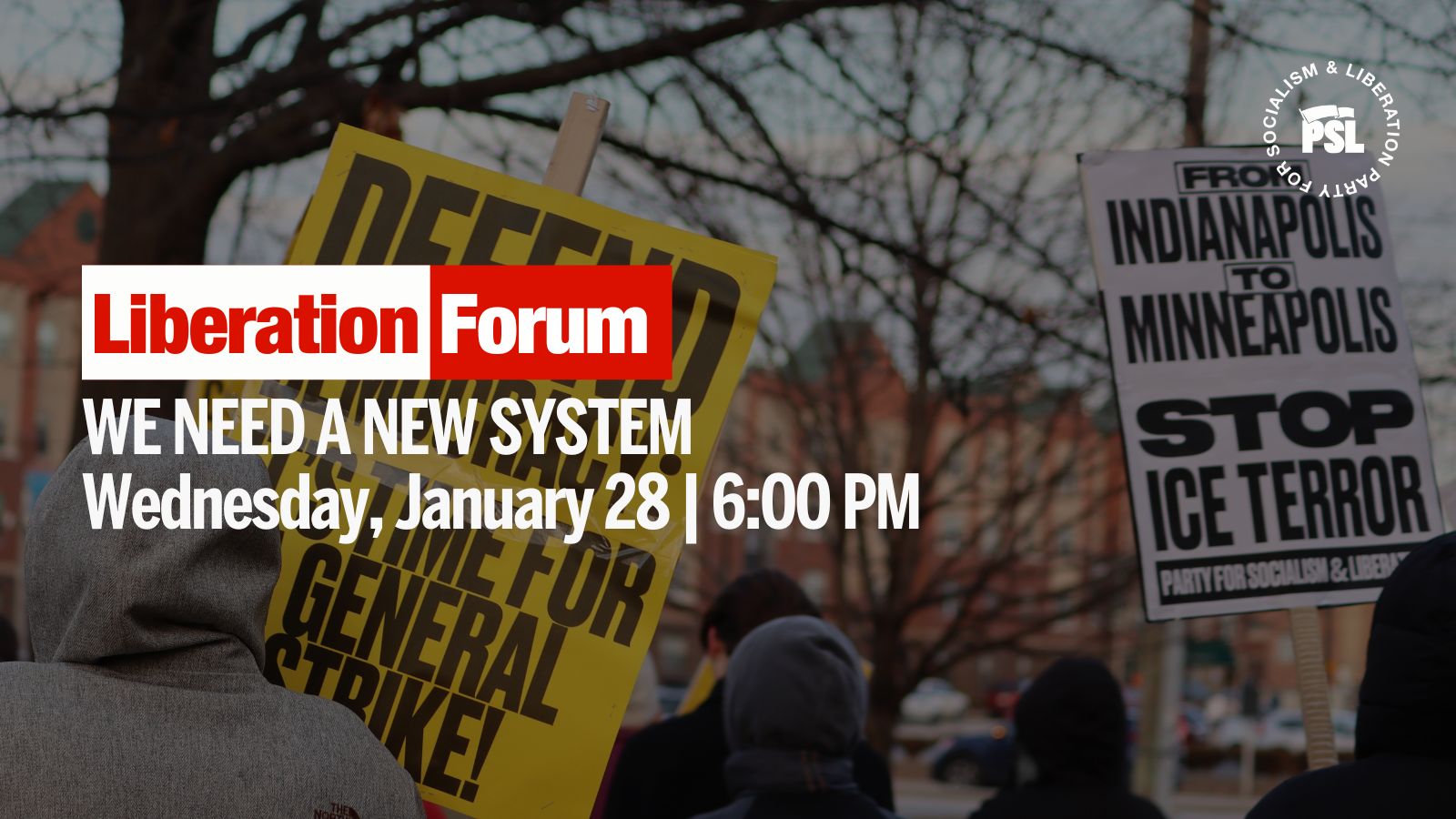But what would it take to abolish ICE and end the threats of global war and climate catastrophe? Join us for our January Liberation Forum to hear how working people can end these outrages and how you can be a part of the work to achieve a new system and build a new society right here in Indianapolis.