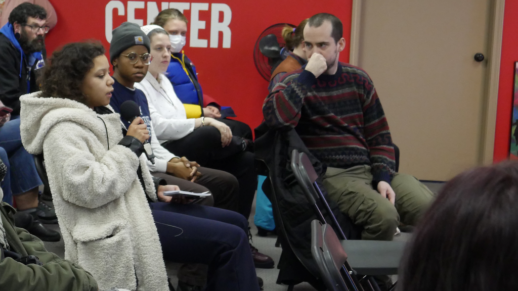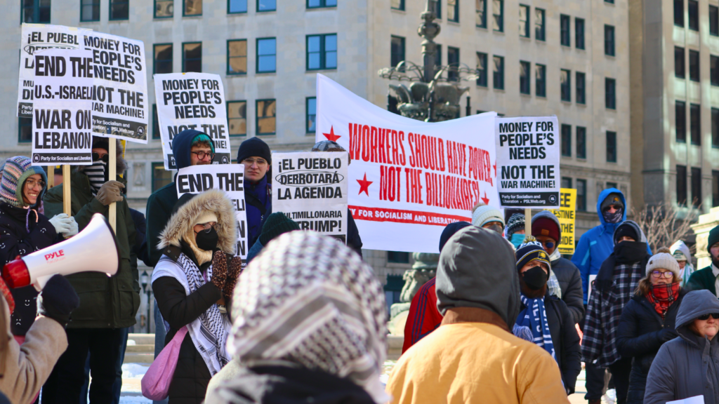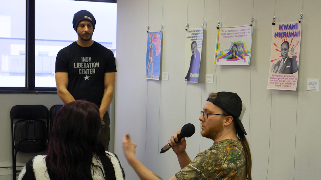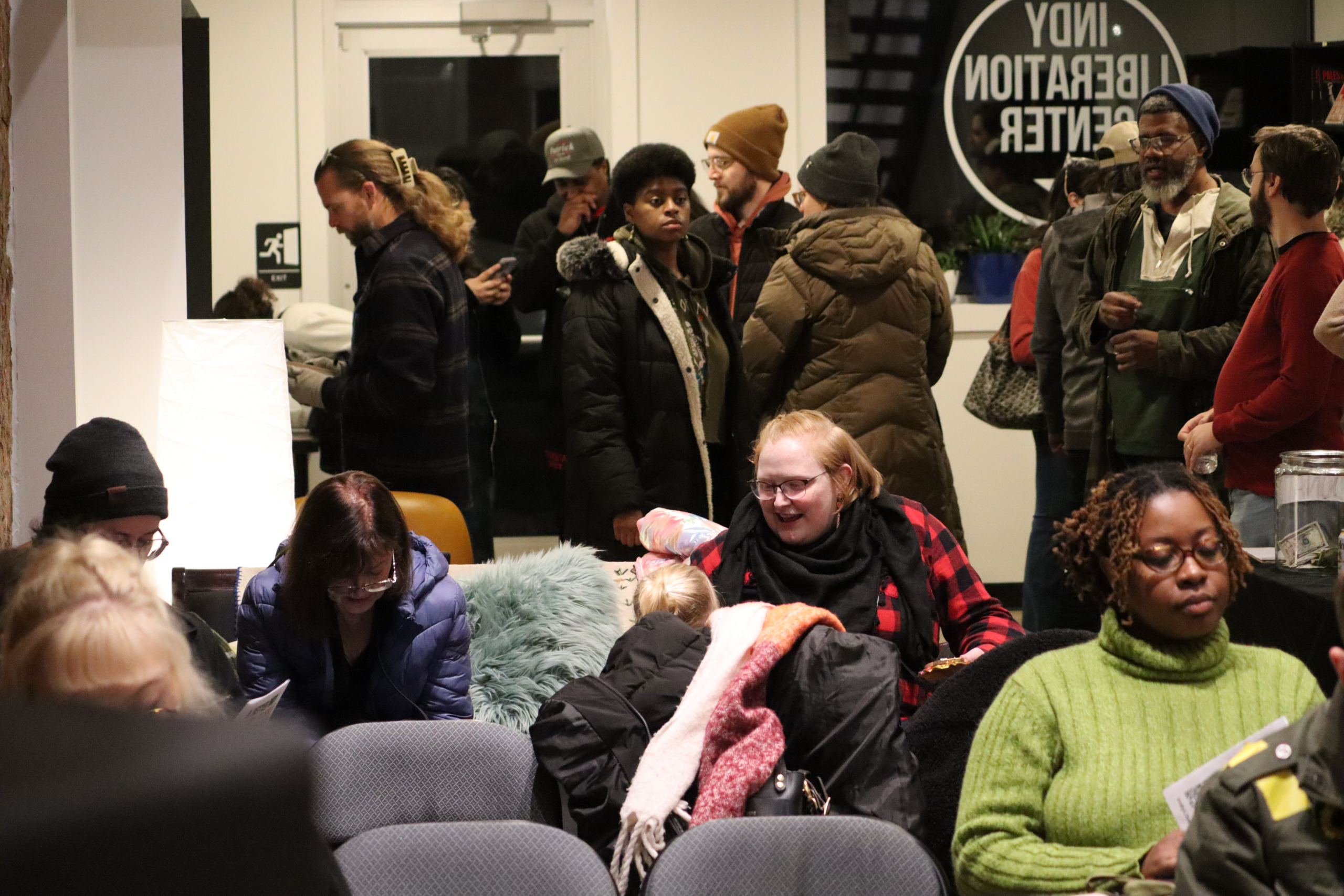 While still fighting the Biden administration’s regressive domestic policies and genocidal global agenda, organizers filled the Center regularly, not to bemoan another four years of Trump but to get ready for a “We Fight Back” counter-inauguration protest to provide infrastructure for a new wave of repression. On January 20, Indianapolis was one of dozens of cities countrywide that held a counter-inauguration action. Despite the frigid temperatures, workers and organizers with Indiana AID, Queer Skate Indy, IDOC Watch, The Phoenix Theatre Cultural Center, Party for Socialism and Liberation – Indianapolis, American-Arab Anti-Discrimination Committee of Indiana, ANSWER Indiana, Indiana Abortion Doula Collective, Central Indiana Democratic Socialists of America, Healer, and Hope Packages took to monument circle in a display of true unity. The next day, the Center was packed for an ANSWER Indiana meeting about fighting back in this new era.