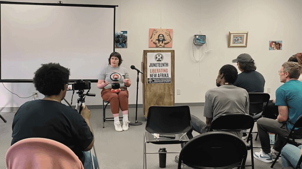 On December 5, we officially opened the new Center—our very first storefront located at 1619 Prospect St. We were honored to have Nikki as a featured speaker, alongside Gloria La Riva and others, thankful for Hot Lamb Indy for the incredible food, and excited to see what the new Indy Liberation Store brings to the Center, the struggle, and the community.