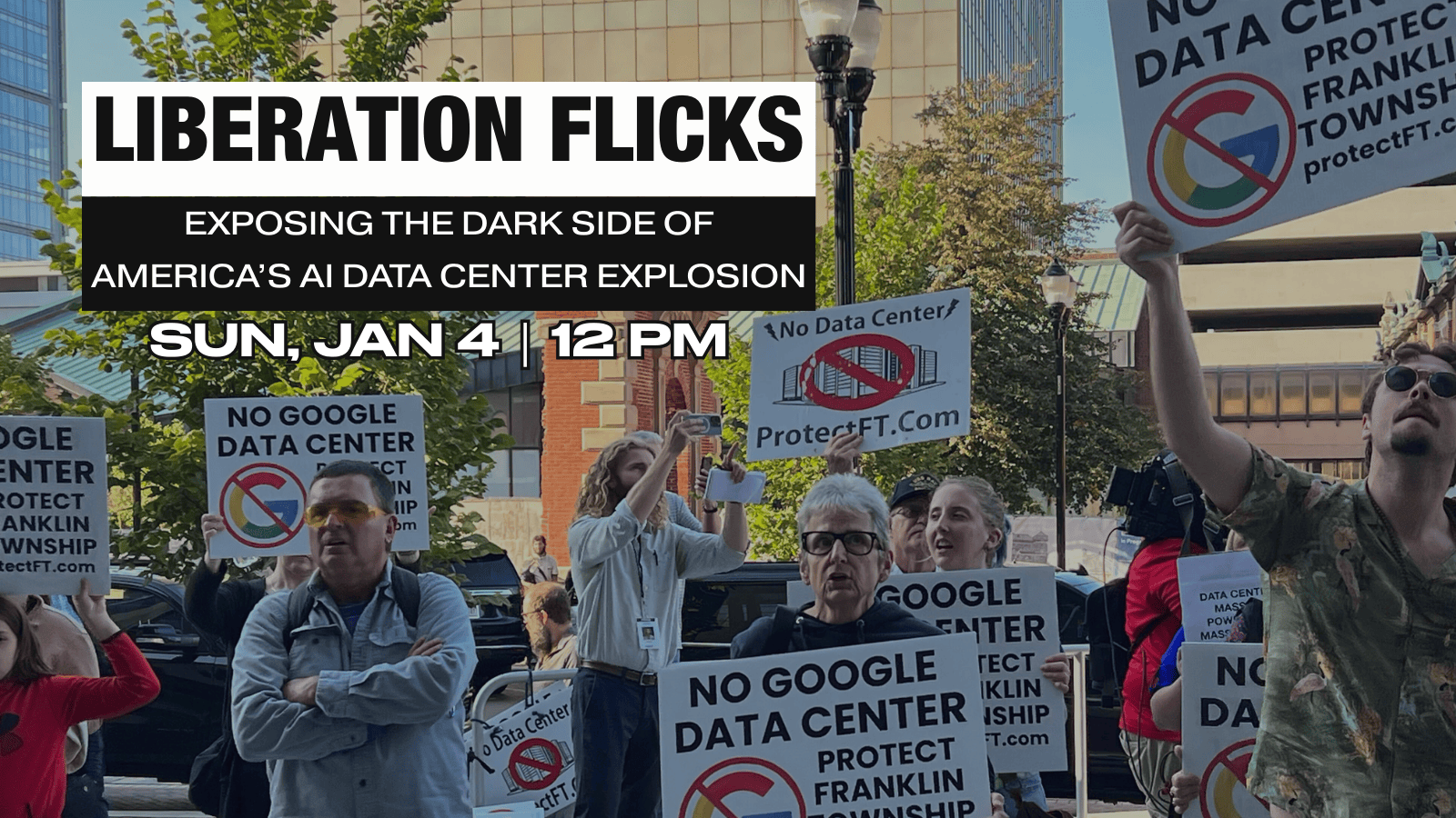 We will begin by viewing “Exposing the Dark Side of America’s AI Data Center Explosion.” Following the film, we will open a discussion to explore the environmental impacts of data centers and examine how they benefit billionaires and the ultra-rich at the expense of the working class.
