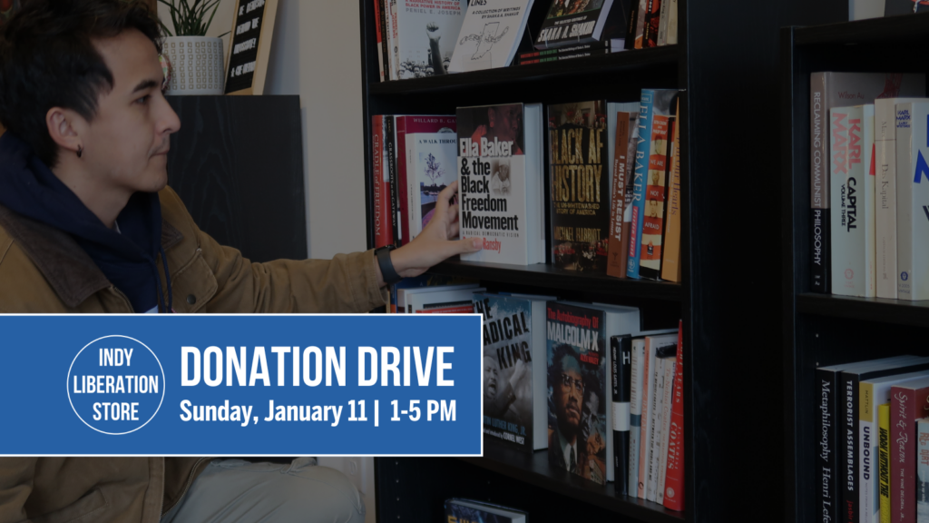 The Indy Liberation Store is Indianapolis’s only dedicated source for materials that educate, mobilize, and celebrate the struggles of oppressed and exploited people everywhere—with a firm anchor in the fights right here in our city.