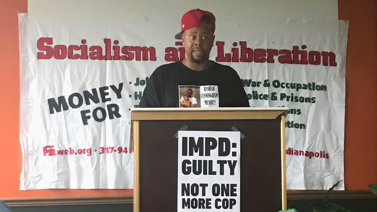 Featured photo: Kwame Shakur speaks at an August 2019 Liberation Forum on gun violence. Credit: PSL Indianapolis.