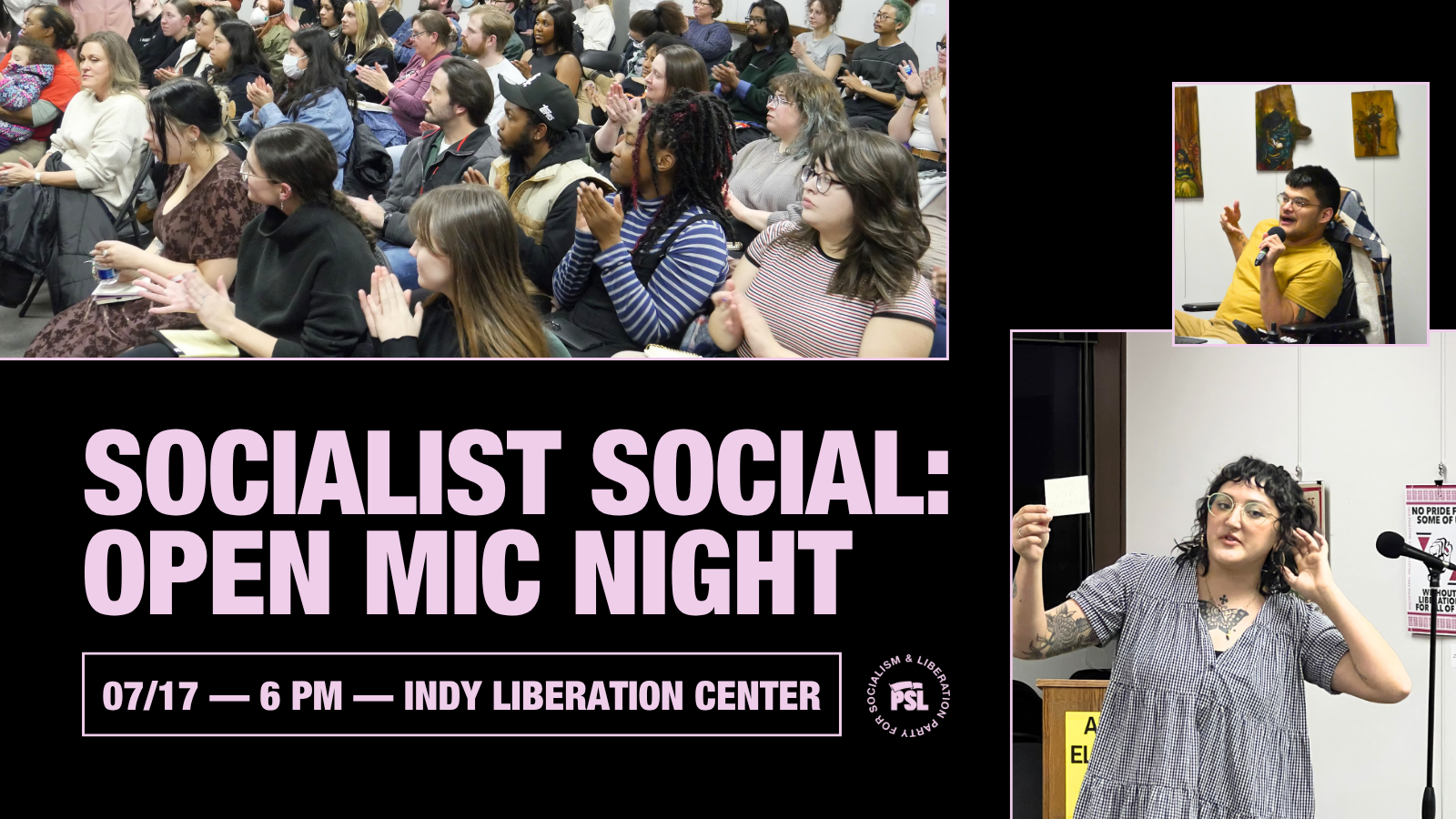 Beyond the performances, this will be a chance to meet fellow organizers, enjoy refreshments, and learn about the Party for Socialism and Liberation’s work in Indianapolis. Whether you’re sharing your art or just coming to listen and connect, all are welcome.