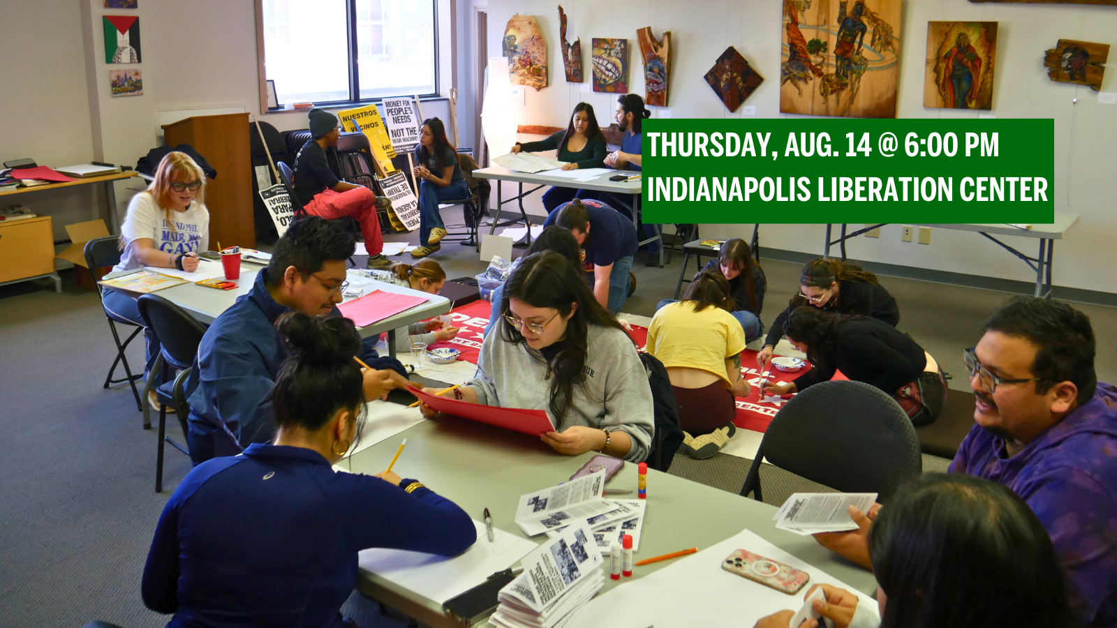 To prepare for a car caravan to protest Camp Atterbury’s T-REX (Technology Readiness Experimentation) exercise, where they are testing a number of weapons and drones in what can only be explained as a “war games” demonstration, we invite all interested community members to the Indianapolis Liberation Center on to make banners, placards, and other organizing materials as we prepare for the car caravan the next day!