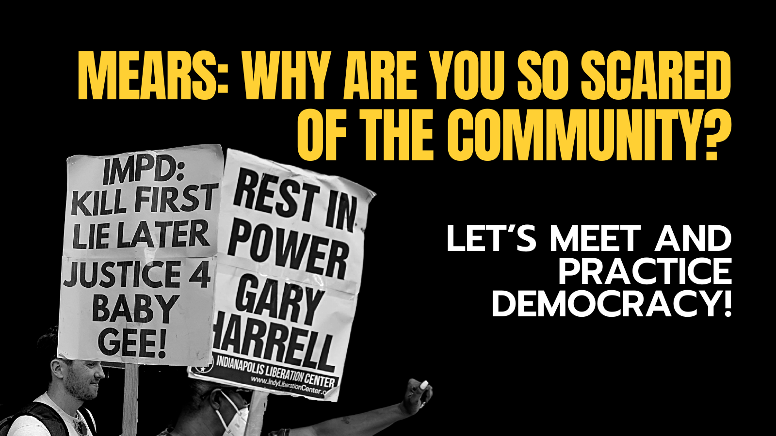 The people immediately took to the streets in a spontaneous series of protests and a vigil organized by Harrell’s community and family. Together with Harrell’s family and community, we have unfortunately continued to struggle to obtain a simple meeting with our elected official, Marion County Prosecutor Ryan Mears.