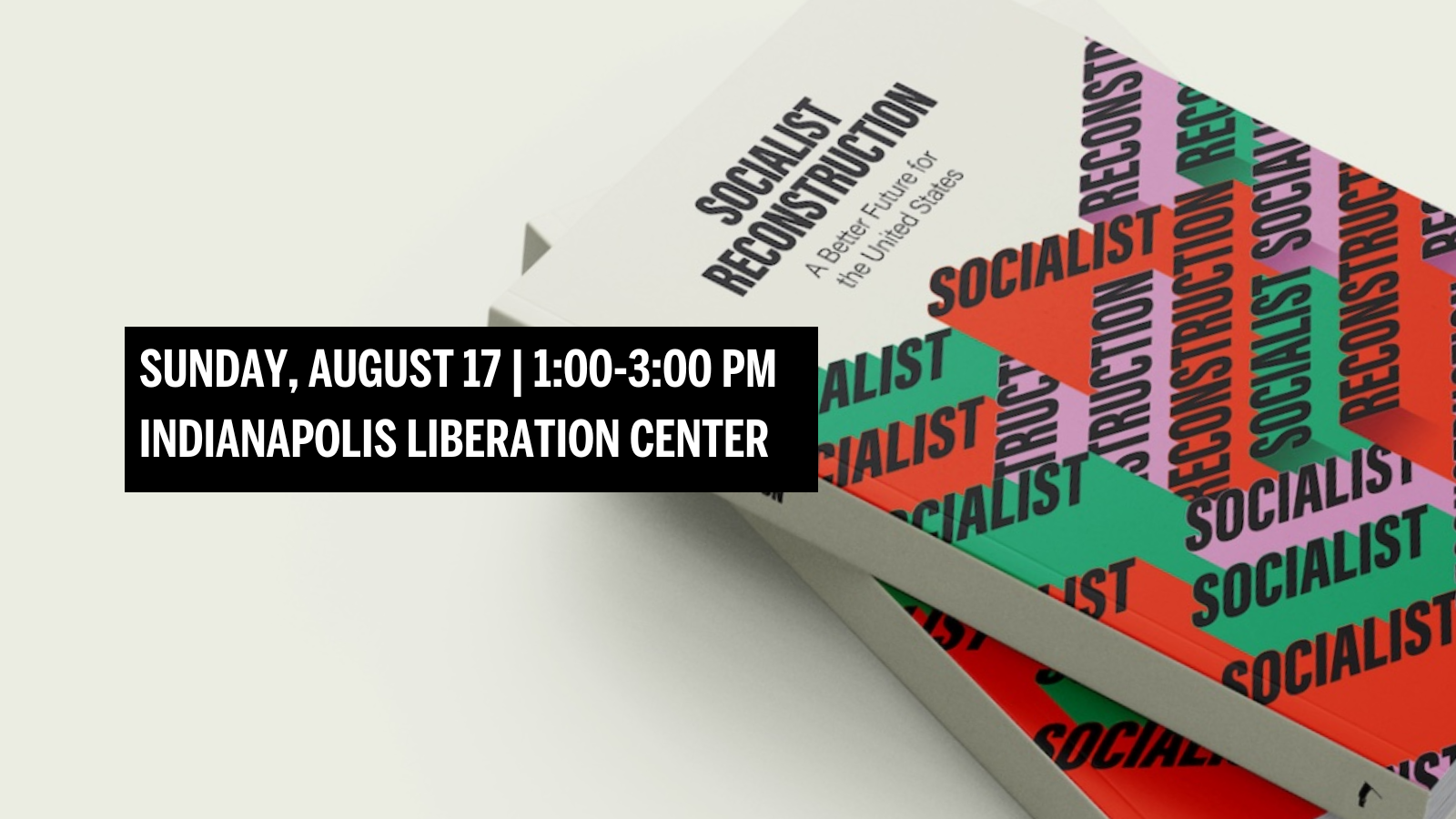 Join the Party for Socialism and Liberation at the Indianapolis Liberation Center for a two-part book study of Socialist Reconstruction: A Better Future for the United States on Sunday, August 17, and Sunday, August 24th.
