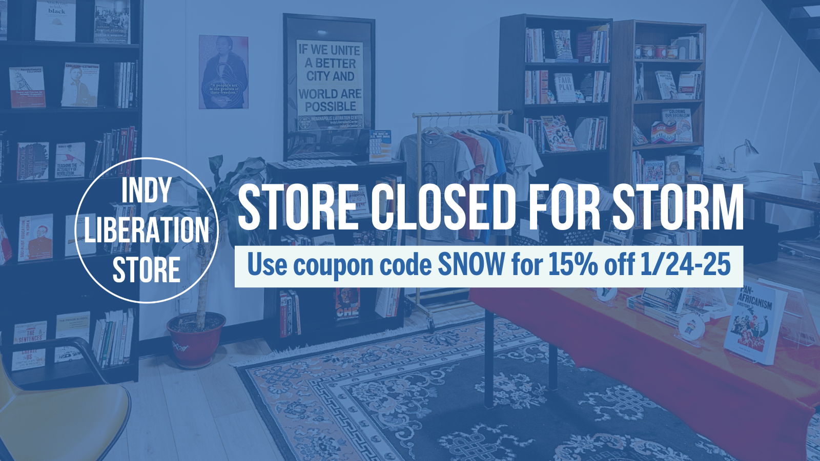 Staying safe and staying in solidarity are our top priorities. With a major winter storm approaching, we’re making some changes to our weekend plans. The Indianapolis Liberation Center and the Indy Liberation Store will be closed on Saturday, January 24, and Sunday, January 25, for everyone’s safety. We will reopen with normal hours on Tuesday, January 27.