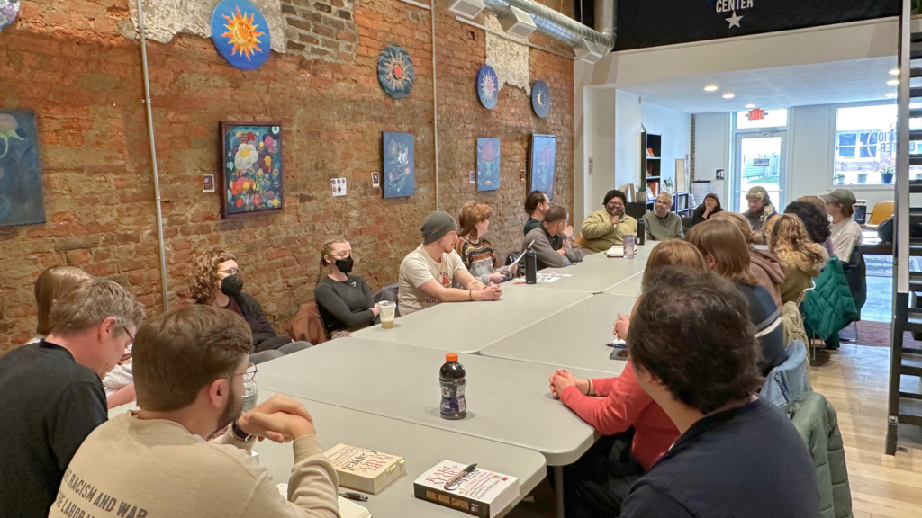 With a range of allied organizations and community partners, in addition to our growing member-groups like Arte Mexicano en Indiana (which powers the Fonseca-Du Bois Art Gallery), the Shaka Shakur Freedom Campaign, Hope Packages, and the ANSWER Coalition, we organize regular educational programs (e.g., forums, individual classes, month-long courses), cultural and artistic events (e.g, art exhibitions, film screenings and discussions, and performances), political mutual aid activities, host a weekly podcast, Naptown People’s Radio, manage the Indy Liberation Store, and maintain our website, social media presence, and our online newspaper, the Indianapolis Liberator. On top of these regular activities and events, we are constantly engaged in struggles on numerous fronts:
