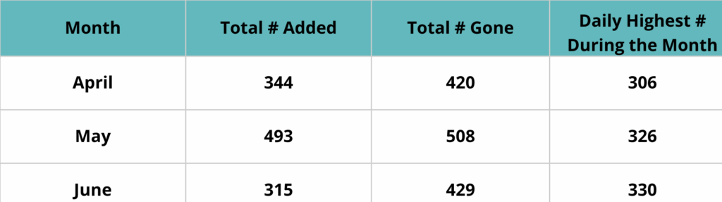 In May, Indiana AID paid over $3,560 in commissary payments, providing $20 to individuals’ accounts on a monthly basis. We paid almost $1,100 in books, buying 102 books for 93 detainees before we had to pause purchases. In June, we saw similar numbers in both commissary & books.