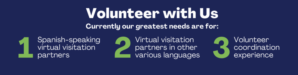 - Visitation partners who speak languages other than English and Spanish