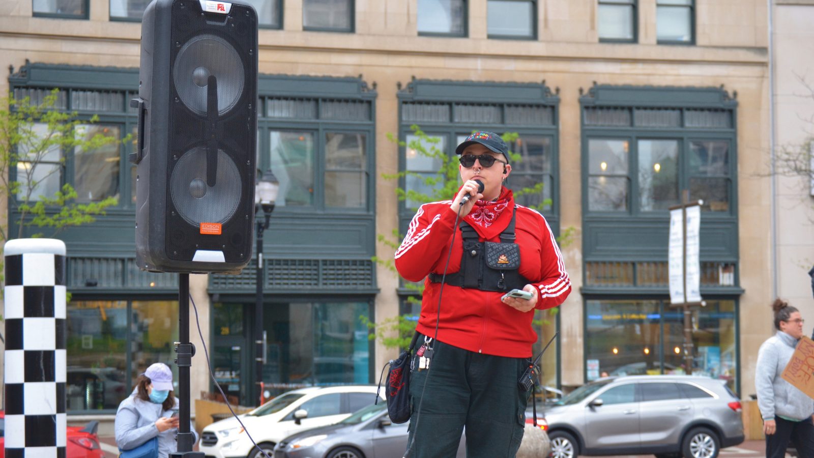 Featured photo: Cambria York speaks at a demonstration in downtown Indianapolis. Credit: Indianapolis Liberation Center.